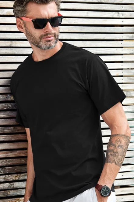 Ühevärvilised mustad meeste T-särgid ilma trükita on põhilised rõivaesemed, mis ei tohiks puududa ühestki garderoobist. Nende puhas ja moodne disain tagab väga laia kasutusvõimaluse – need sobivad tööle, vabaajaks ning kandmiseks jaki või dressipluusi all.